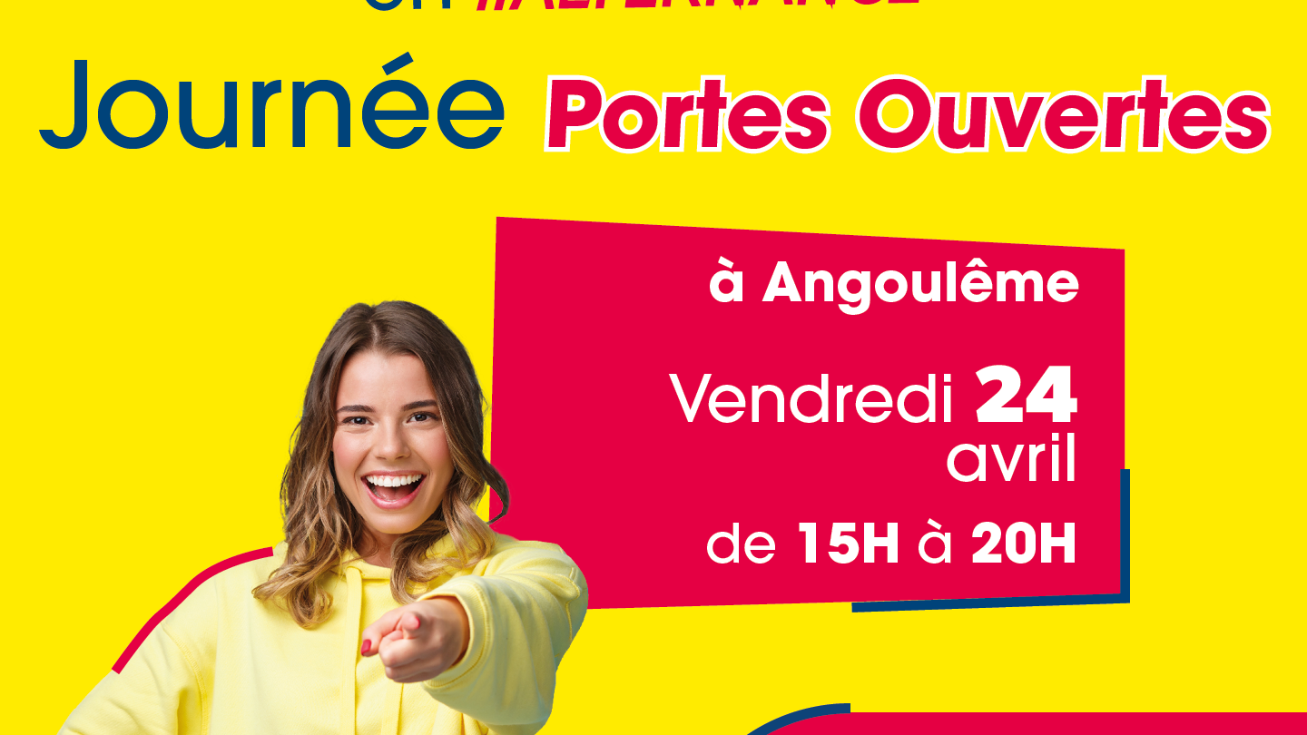 Venez découvrir nos formations du CAP au bac+5 en alternance, le 14 mars de 9H à 13h à Angoulême et à Cognac