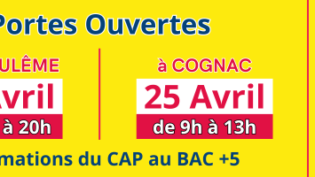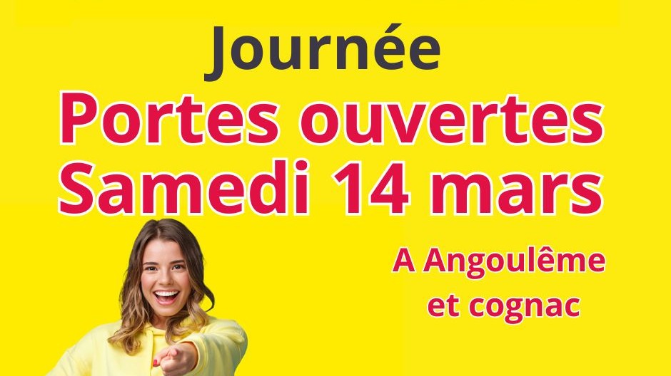 Venez découvrir nos formations du CAP au bac+5 en alternance, le 14 mars de 9H à 13h à Angoulême et à Cognac